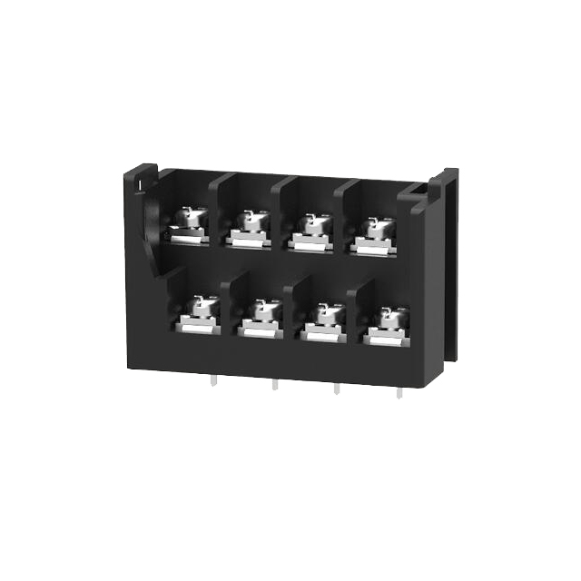 栅栏双层端子,标称电流:20A,额定电压(UL):300V,额定横截面:18~12AWG,针距:9.52mm,颜色:黑色,触点表面:锡